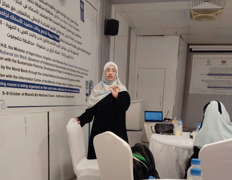 تواصلت لليوم الثاني فعاليات الورشة التدريبية الخاصة بجامعي مصيد الأسماك ضمن مشروع التنمية المستدامة للبحر العربي، وذلك بحضور الأستاذ أنور السعدي، مدير عام التخطيط بوزارة الزراعة والري والثروة السمكية، والمهندسة رحاب رفيق، مدير عام مركز المعلومات بالوزارة، والأستاذ صلاح بابريدة، مدير عام التخطيط والتنمية بالهيئة العامة للمصائد السمكية في البحر العربي.