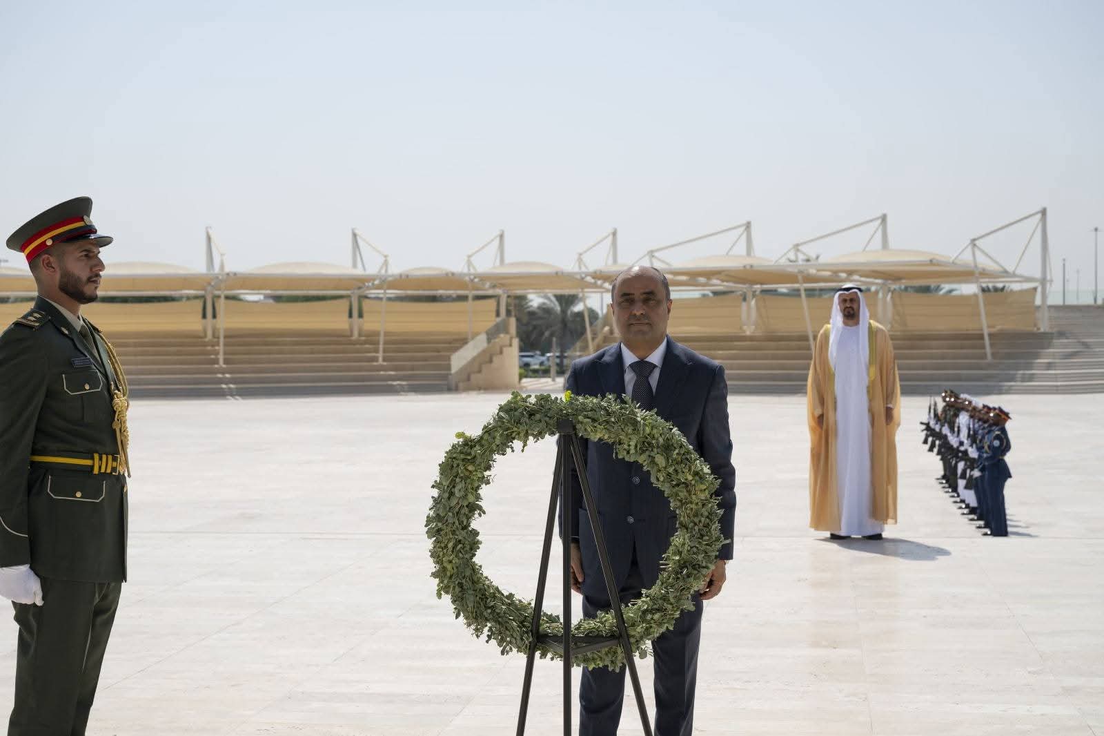 ووضع رئيس الوزراء إكليلاً من الزهور أمام نصب الشهيد في واحة الكرامة، وقرأ الفاتحة ترحماً على أرواح الشهداء الذين سطروا بدمائهم أنبل صور التضحية والفداء في سبيل الوطن والحق والإنسانية.