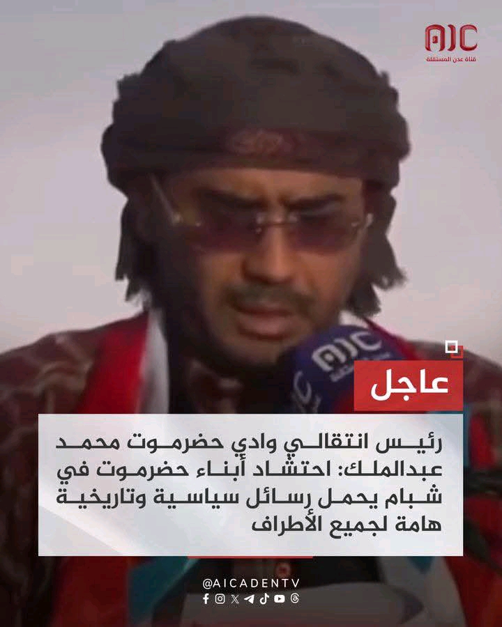 رئيس انتقالي وادي حضرموت: تقع علينا مسؤولية تاريخية لجمع شتات حضرموت تحت مظلة الدولة الجنوبية الفيدرالية التي تضمن الحقوق والخصوصية.